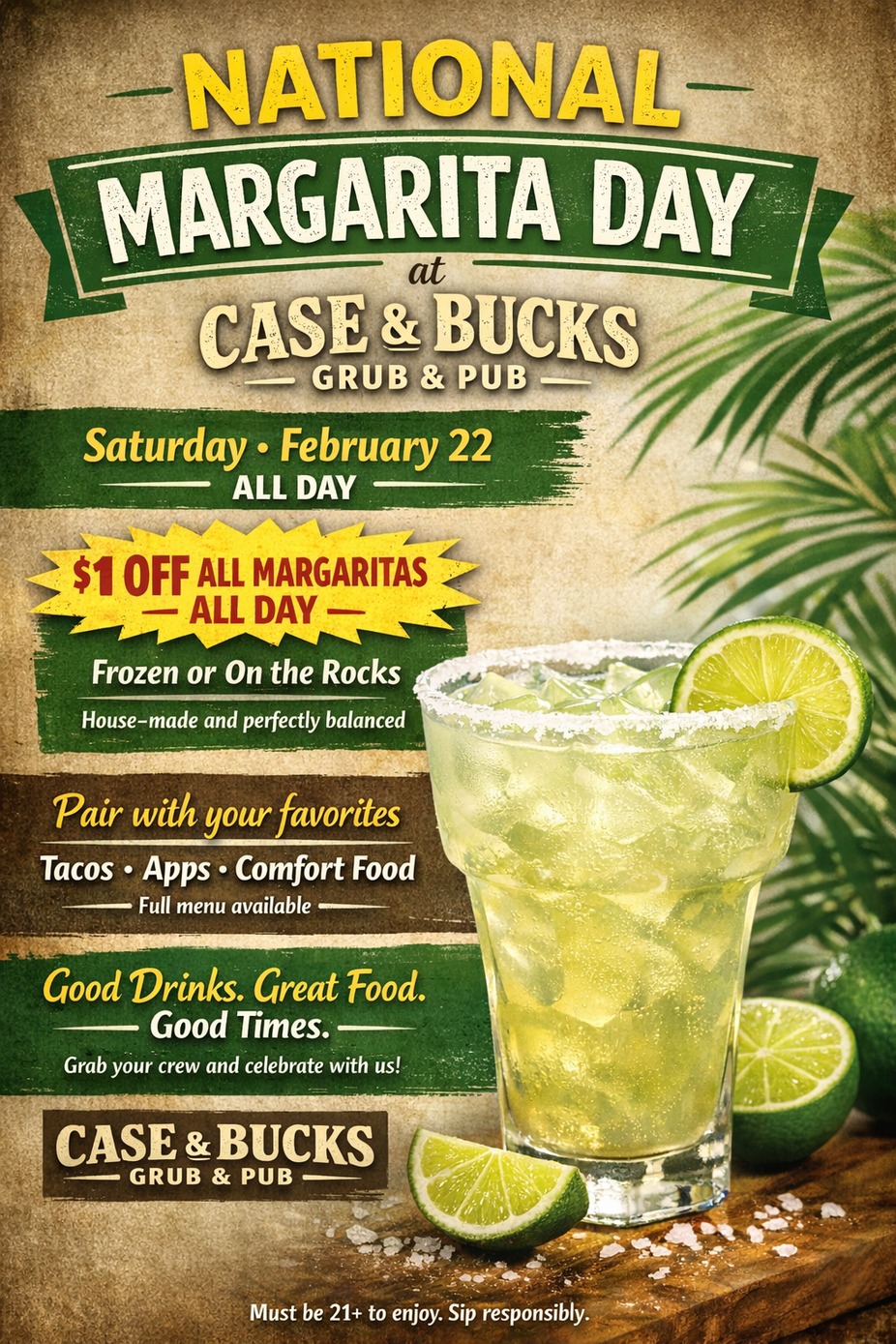 Come celebrate National Margarita day with us on February 22nd. $1 off all day.